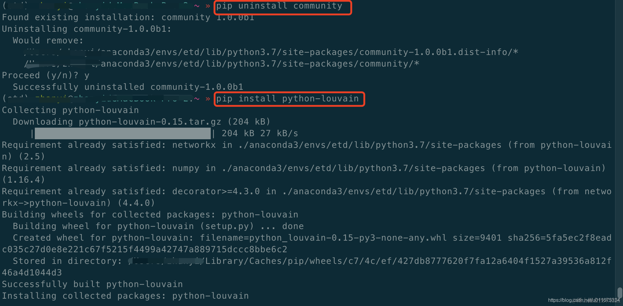 正确解法是删除 community 相关包,并下载安装 python-luovain (用于社区检测的louvain算法 )