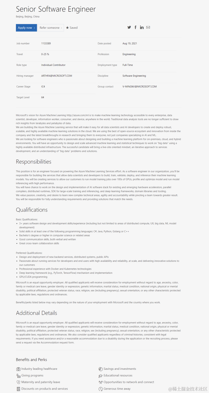 l Dev: careers.microsoft.com/us/en/job/1…, JD(Job Description)上只写了Senior,但是各个等级的Dev都招。