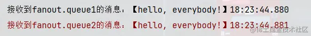 运行该方法,可以发现 fanout.queue1、fanout.queue2 都收到了交换机的消息。