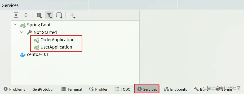 微服务项目下,打开 idea 中的 Service,可以很方便的启动。
