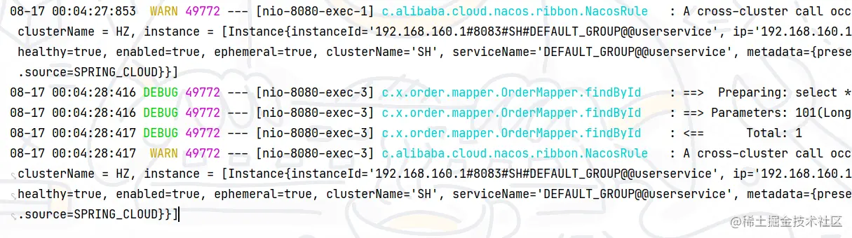 - order-service 拉取服务时,就能将故障实例排除了