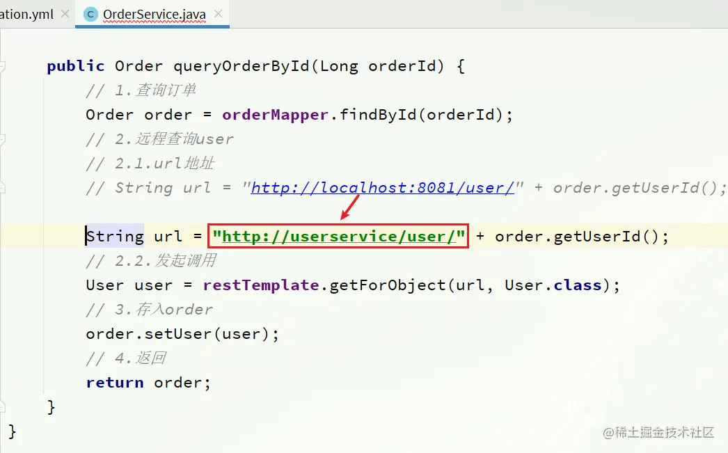 order-service从实例列表中利用负载均衡算法选中一个实例地址,向该实例地址发起远程调用
