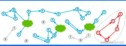 - 白色:未搜索的对象,在回收周期开始时所有对象都是白色,在回收周期结束时所有的白色都是垃圾对象