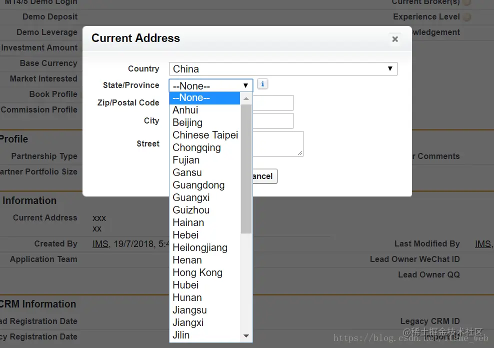 很明显,升级后Country和State/Province从文本变成了picklist,看完下图你会惊讶它的新功能后又陷入一轮沉思: