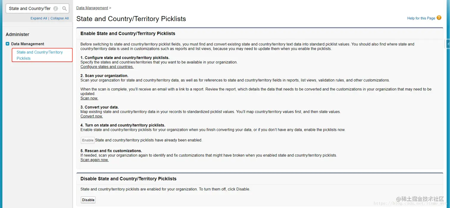 搜索并点击State and Country/Territory Picklists,进入下图界面:
