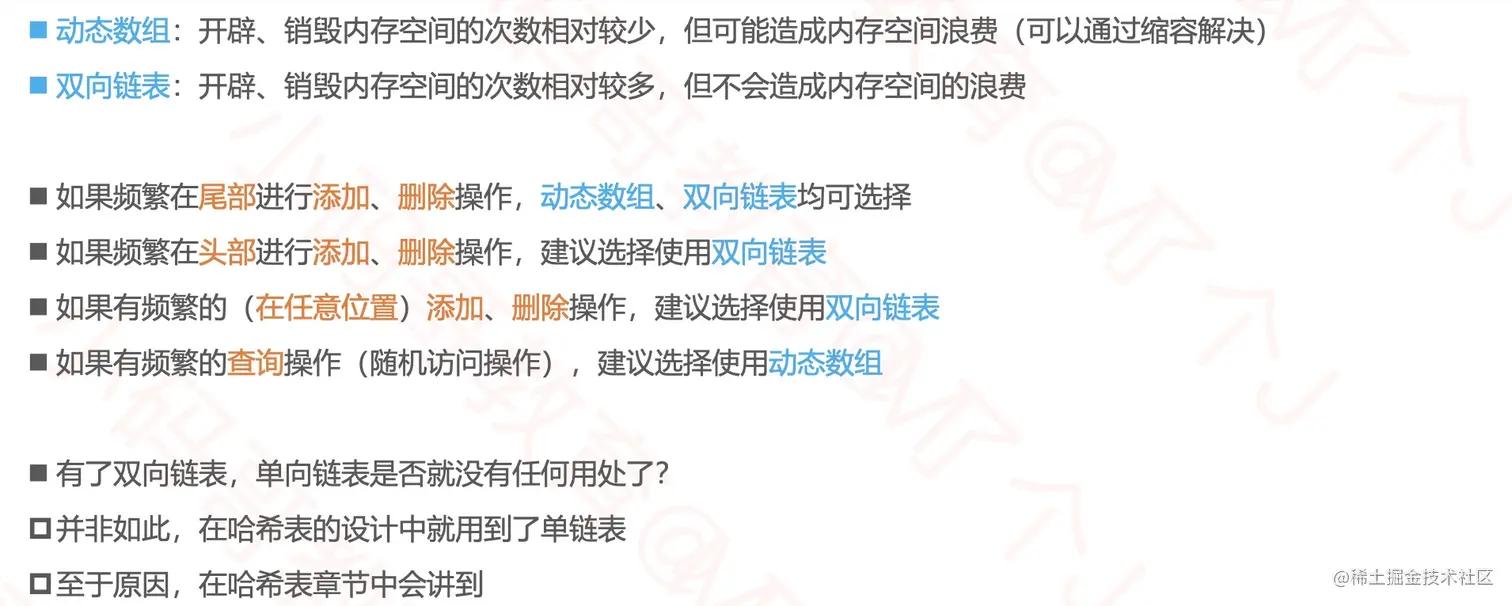 - 同样的,相比于双向链表,我们需要对