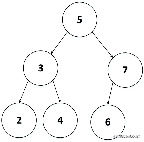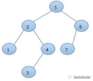 二叉查找树(BST,Binary Search Tree),也叫二叉排序树,在二叉树的基础上需要满足:任意节点的左子树上所有节点值不大于根节点的值,任意节点的右子树上所有节点值不小于根节点的值。如下是一颗BST。