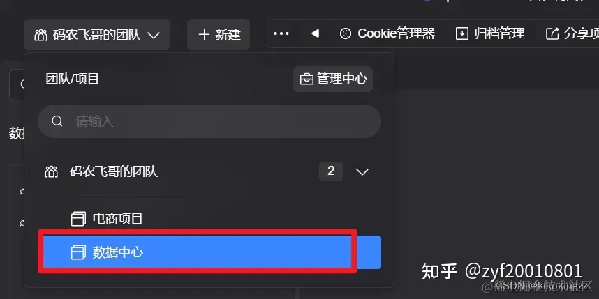 协作者账号飞哥二号登录之后,它不仅可以看到自己团队下的项目,还能查看码农飞哥团队下的项目。