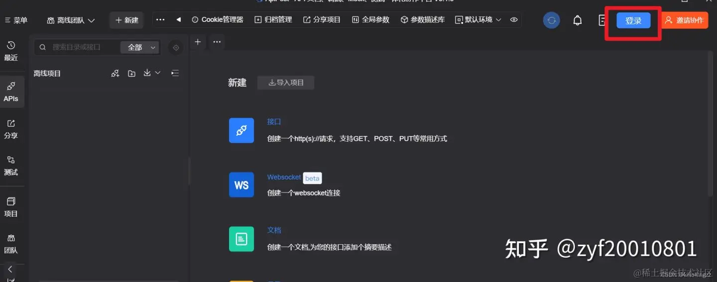 step1.安装完成之后,首先需要点击登录按钮,只有登录成功了才能进行相关的操作,如果没有账号的话则需要先注册一个账号,不过比较友好的是Apipost支持微信扫码登录。