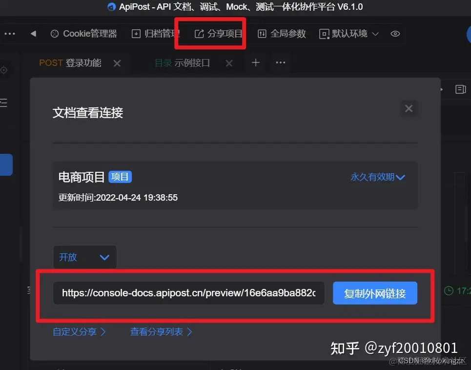 自动生成漂亮的接口文档是我认为Apipost最实用的一个功能之一,相比于Postman 鸡肋的生成接口文档功能,Apipost做的就要好太多了。在前后端分离的大背景下,接口文档是前后端联调标准语言,一个清晰准确的接口文档可以大大提高前后端联调的效率。Apipost生成接口文档的方式也非常简单,只需要分享一下就可以了。