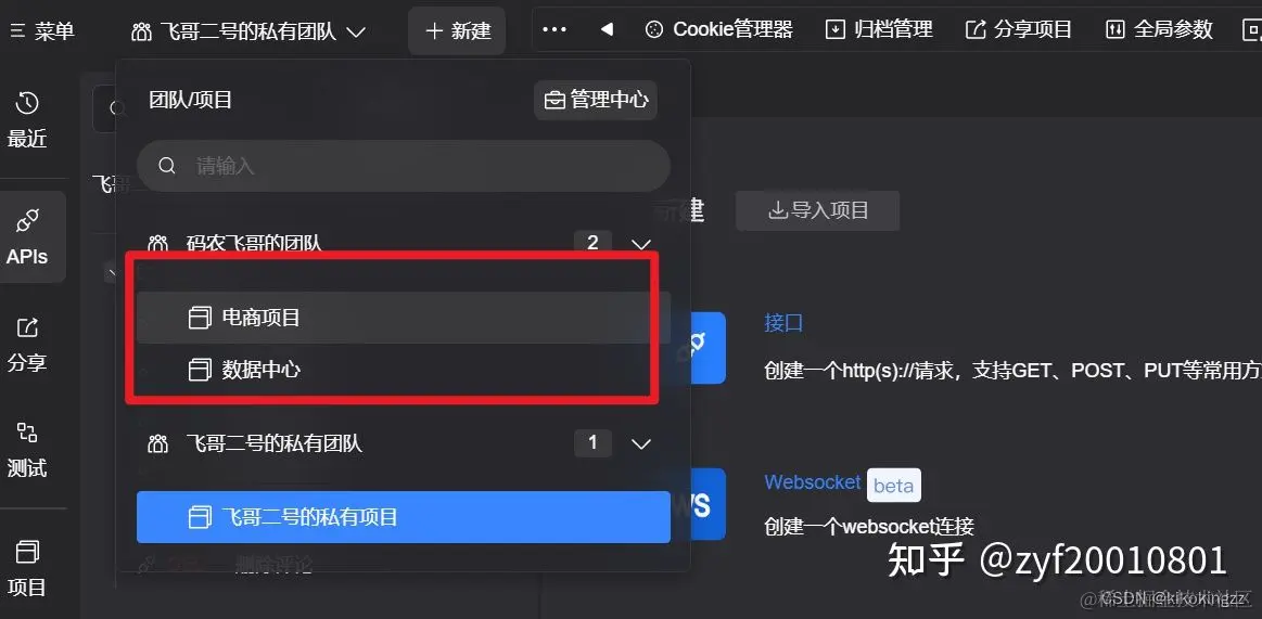 团队协作又是一个痛点,在公司里你永远不是一个人在战斗,你的上游有产品经理,下游有测试小姐姐,还有前端开发人员与你并肩作战。所以,团队之间的沟通协作尤其重要。Apipost的团队协作功能真正做到了团队内部的项目实时共享,上下游无缝协同。