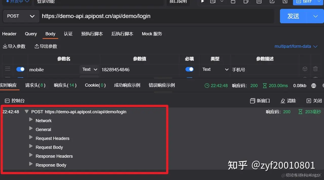在控制台中我们可以查看接口请求的完整信息,后面的演示中我们会多次使用到控制台。
