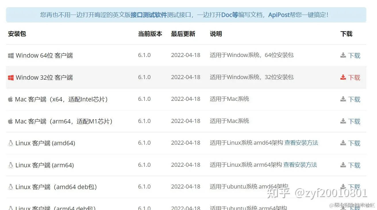 你这里可以根据自身的操作系统选择对应的安装包下载,安装包下载完成之后,按照安装提示操作即可顺利安装Apipost客户端。