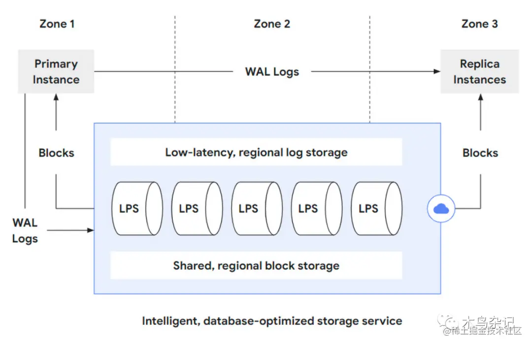 由于笔者主要做存储,下面基于谷歌这篇介绍 AlloyDB 存储层博文[3],剖析下 AlloyDB 存储层架构,看看其设计有何亮色。