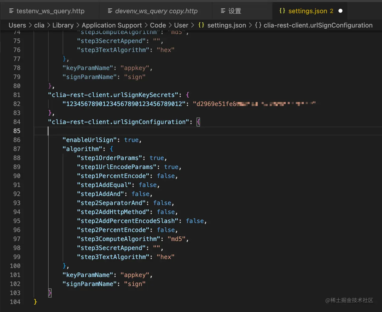 签名算法和参数名称可以进行配置,默认配置的算法是我们自己所使用的,如下的算法:
