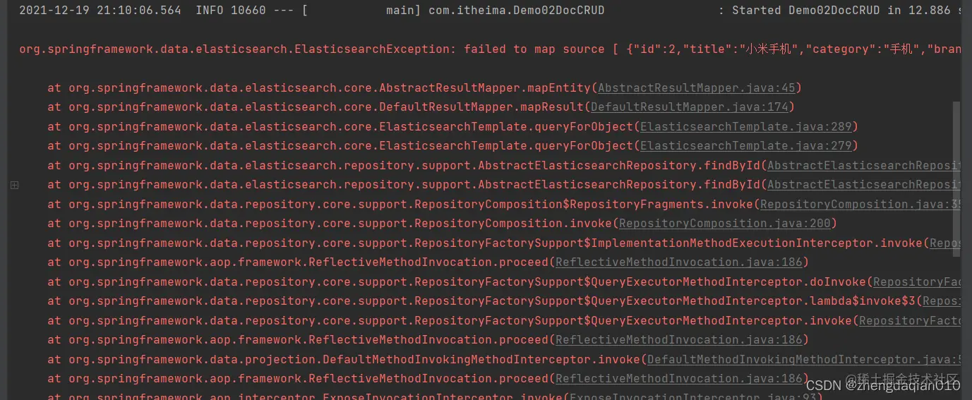 ElasticsearchException: failed to map source XXX to class XXXX 观世界 2022-05-15 174 阅读1分钟 ElasticsearchException: failed to map source XXX to class XXXX 编辑 出现这种情况原因就是实体类中缺少空参构造 编辑 在实体类中,添加空参构造即可 编辑 如果对你有用,麻烦顺手点个赞