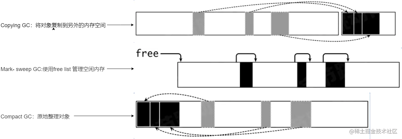- 将死亡对象的内存标记为可分配(Mark-sweep GC)