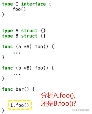 - 根据i的具体类型,产生了新的控制流,i.foo(), 分析继续