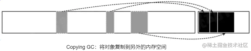 - 将存活对象复制到另外的内存空间(Copying GC)