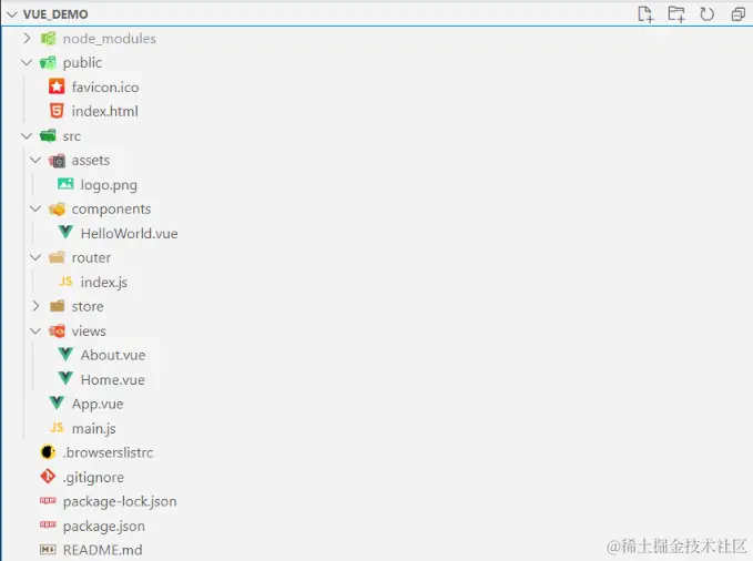 项目分为三大块:node_modules、public、src 以及其他的附属文件