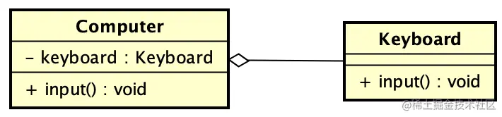 ❝电脑有键盘才能输入信息,电脑是整体,键盘是部分,键盘也可以离开电脑,单纯的拿去敲。所以是聚合。 ❞