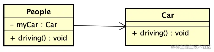 - 【箭头指向】:带空心菱形的实线,空心菱形指向整体。