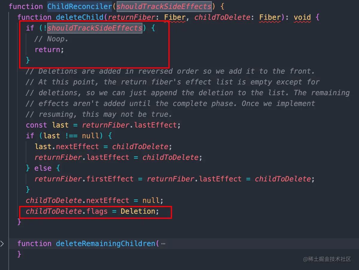 当shouldTrackSideEffects === true时,会将要删除的Fiber节点的flags打上Deletion标记