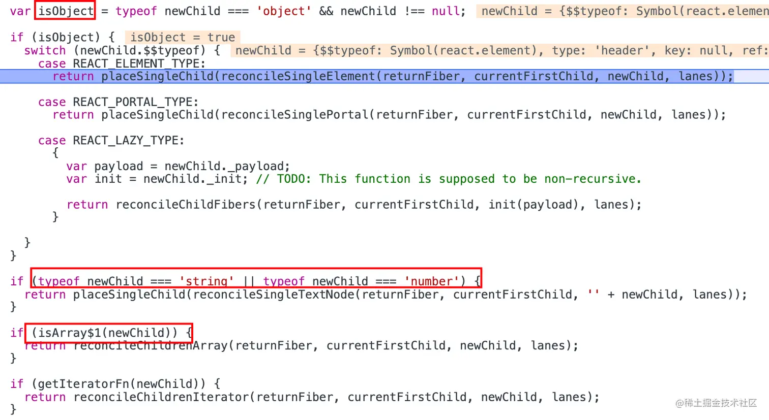 ChildReconciler会判断newChild(当前Fiber节点的子节点)是否是一个Object或者是string和number或是否为一个Array