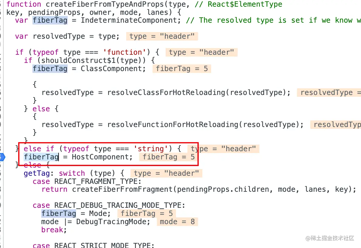 为fiberTag赋值,调用createFiber方法创建Fiber节点