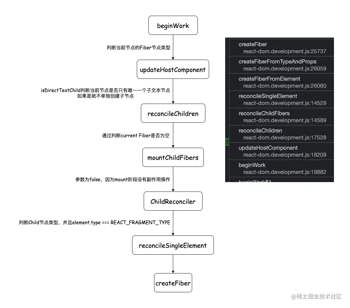 mount时的beginWork就是为当前Fiber节点创建一个子Fiber节点- 每次