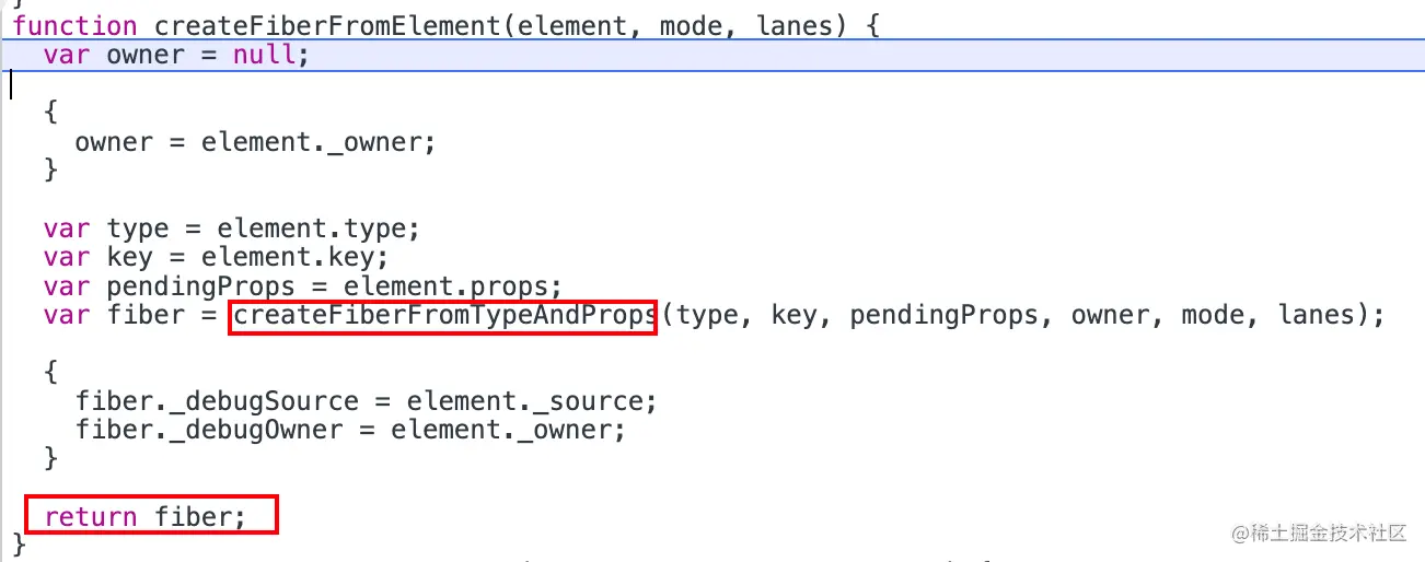 通过调用createFiberFromTypeAndProps创建一个Fiber节点并返回。