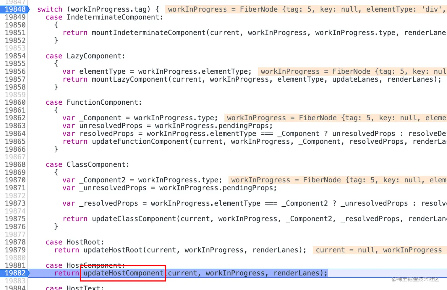 因为是current fiber为空下一步这是进入switch(workInProgress.tag)