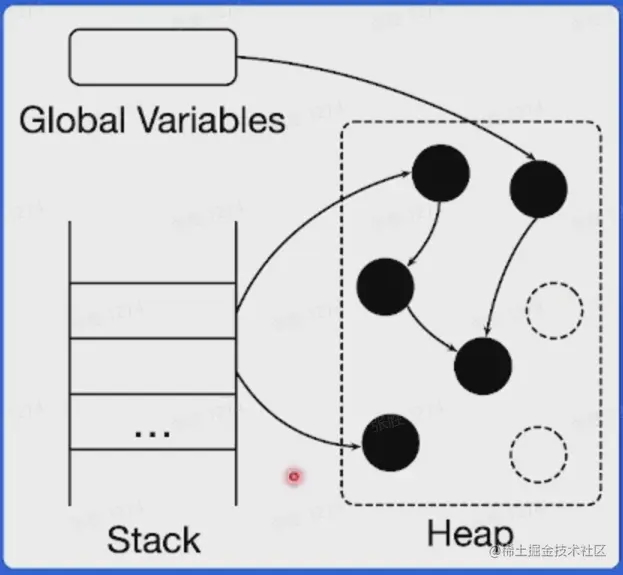 - 追踪垃圾回收,指针指向关系不可达的对象,从标记的根对象找到所有的可以达到的对象,标记保留,不可达的对象清理;重要的一点就是用来标记的根对象一般是静态变量,全局变量,常量,线程栈;