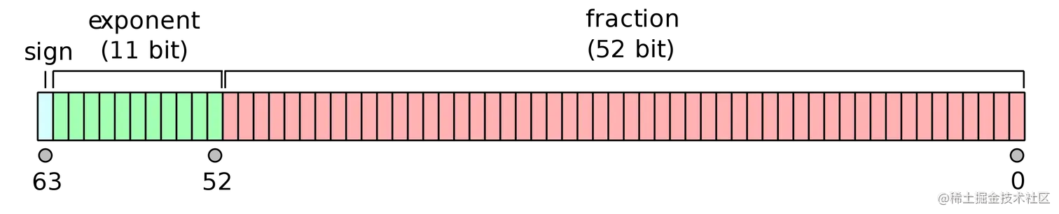 - 尾数位 fraction:剩下的 52 位代表的是尾数,超出的部分自动进一舍零