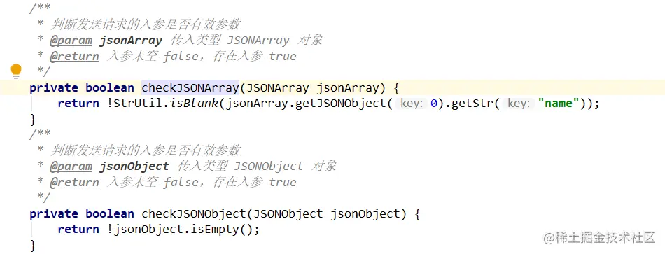 接下来进入到请求方法的判断,然后进一步判断目前前端提交过来的各种类型的参数情况,这里抽出去写了 2 个判空的方法。