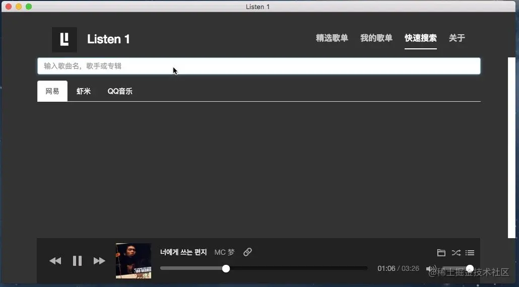 很多其他的工具使用的都是网上现成的资源,比如 1listen 就是使用的虾米,QQ 和网易云的音乐源。