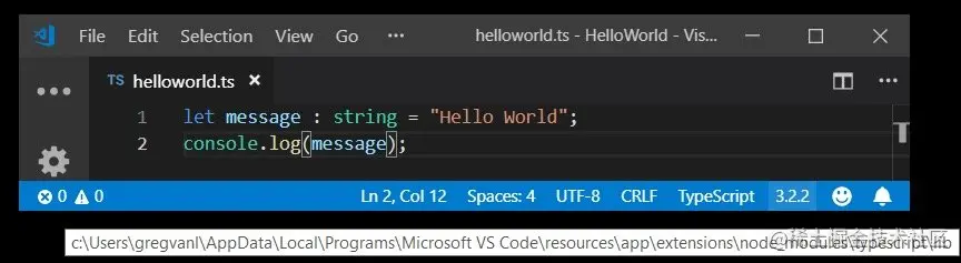 方法很简单, 你只需要打开一个 workespace 下的 TypeScript 文件,然后点击右下角的 TypeScript 旁边的版本号。
