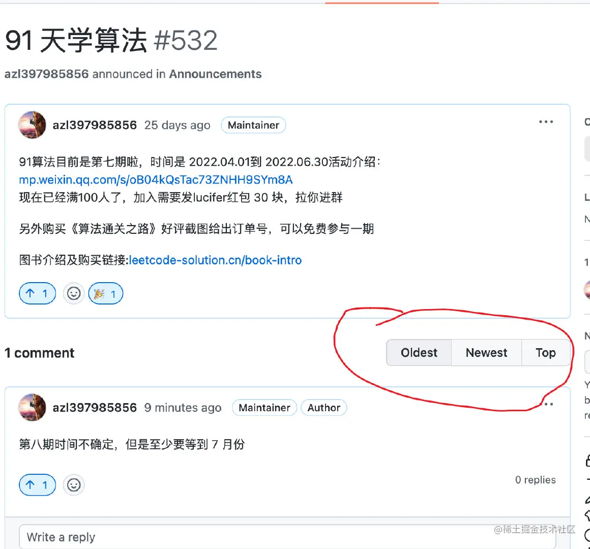 Disscussion 弥补了这块空白。 Disscussion 内置两种排序规则,分别是时间顺序和投票数。