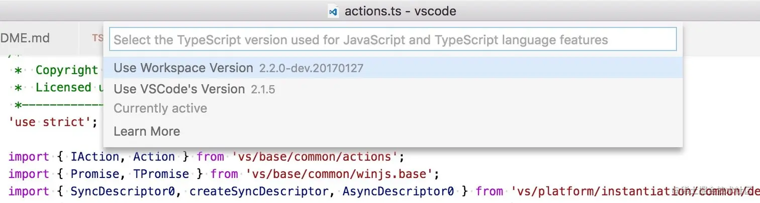 vscode 中会自动为 typescript 项目选择 workspace 的 node_modules 的 typescript,但是我们可以手动选择 workspace。