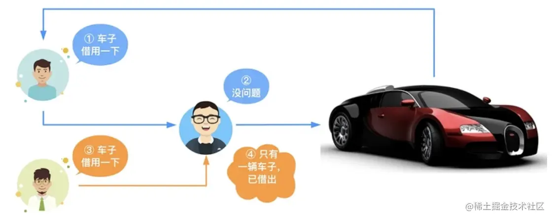 如下图的车,只有一辆,一旦借出去则不能再借给别人: