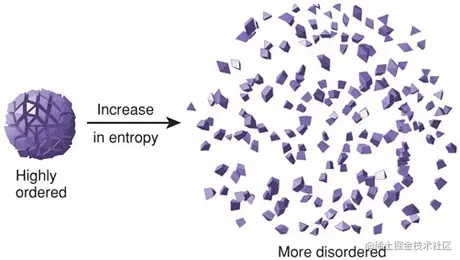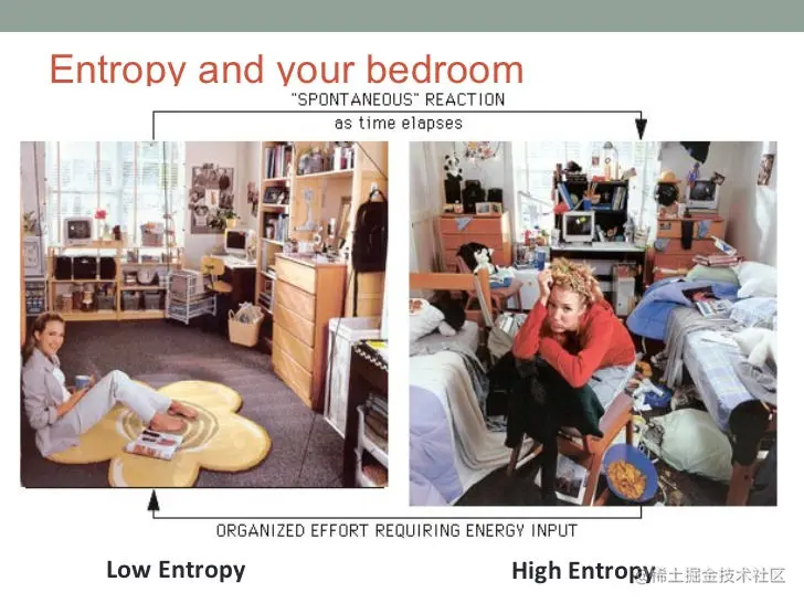(上图中,熵低则混乱度低,熵高则混乱度高。)