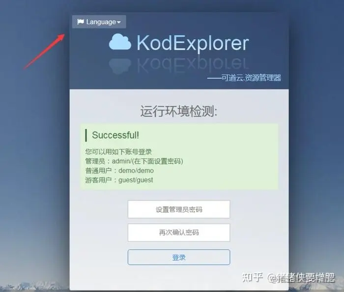 输入自己的域名或者IP开始安装,直接看到这个界面,左上角可以选择语言,默认是简体中文,只要在这里设置管理员密码就可以直接登录了,非常方便。