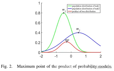 概率模型乘积的最大值点反映了两个种群的共同中心化,表达了进化过程中两个种群的共同搜索趋势[56]。在我们的算法中,最大点用于指导每个任务的搜索。有助于加快收敛速度,降低陷入局部最优的概率。