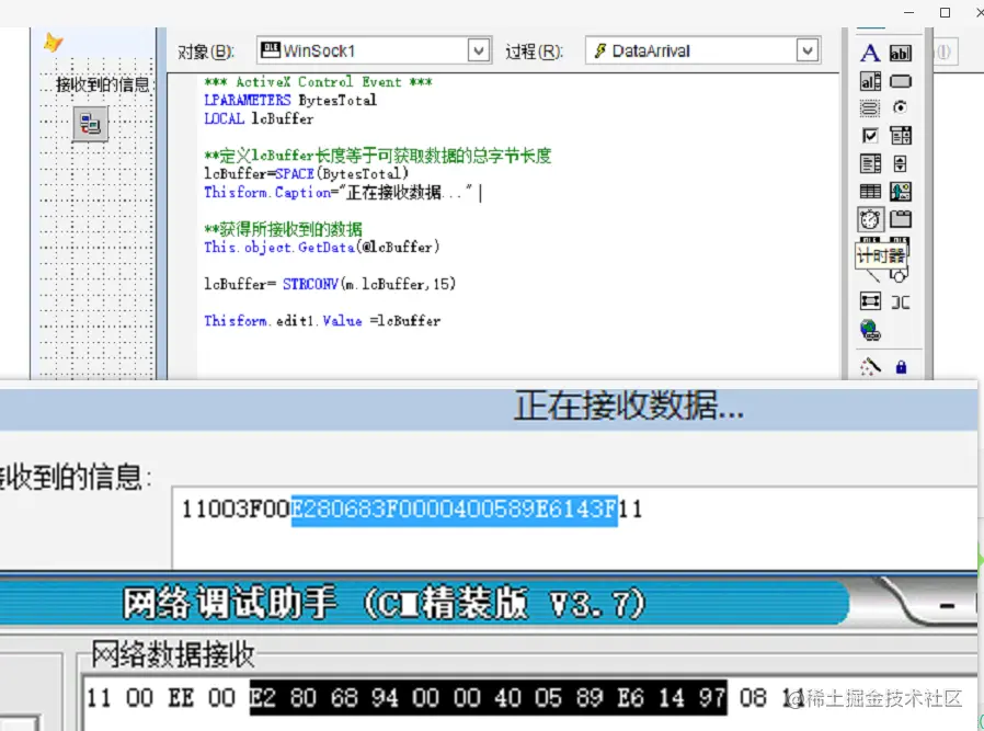 强哥在虎哥的帮助下解决了,虎哥说是VFP不支持BYTE,但设备发送是BYTE,所以直接取是取不到正确的数据。然后用了虎哥VB封装的一个 ActiveX DLL 组件,经过转换后得到了正确的数据。