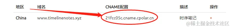 而其中最重要的CNAME信息,可以直接在cpolar官网后台建立自定义域名隧道处获取得,如下图所示。