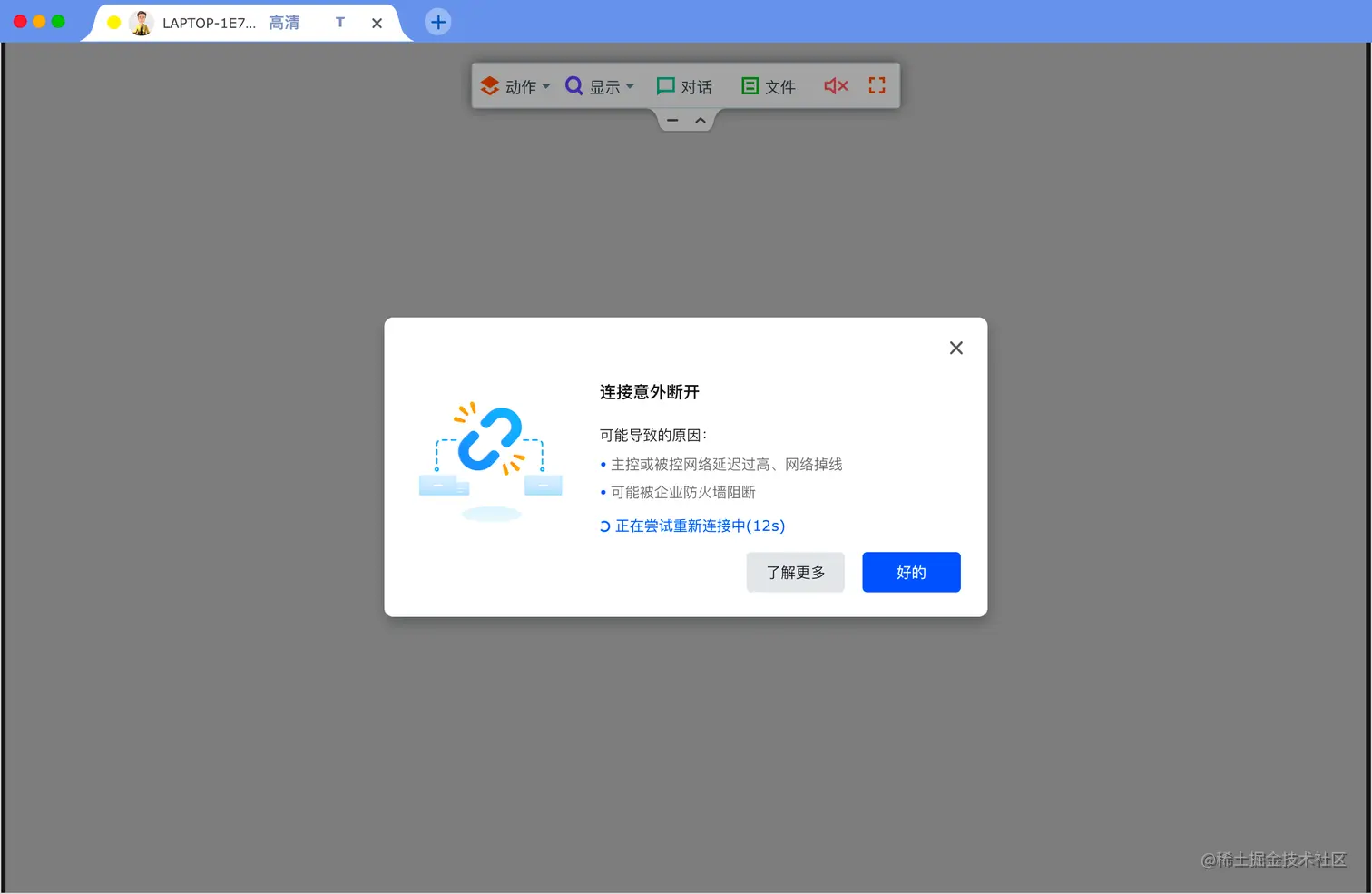 当发现远程设备断开了,ToDesk 会自动重连,这一点绝对属于贴心服务了。