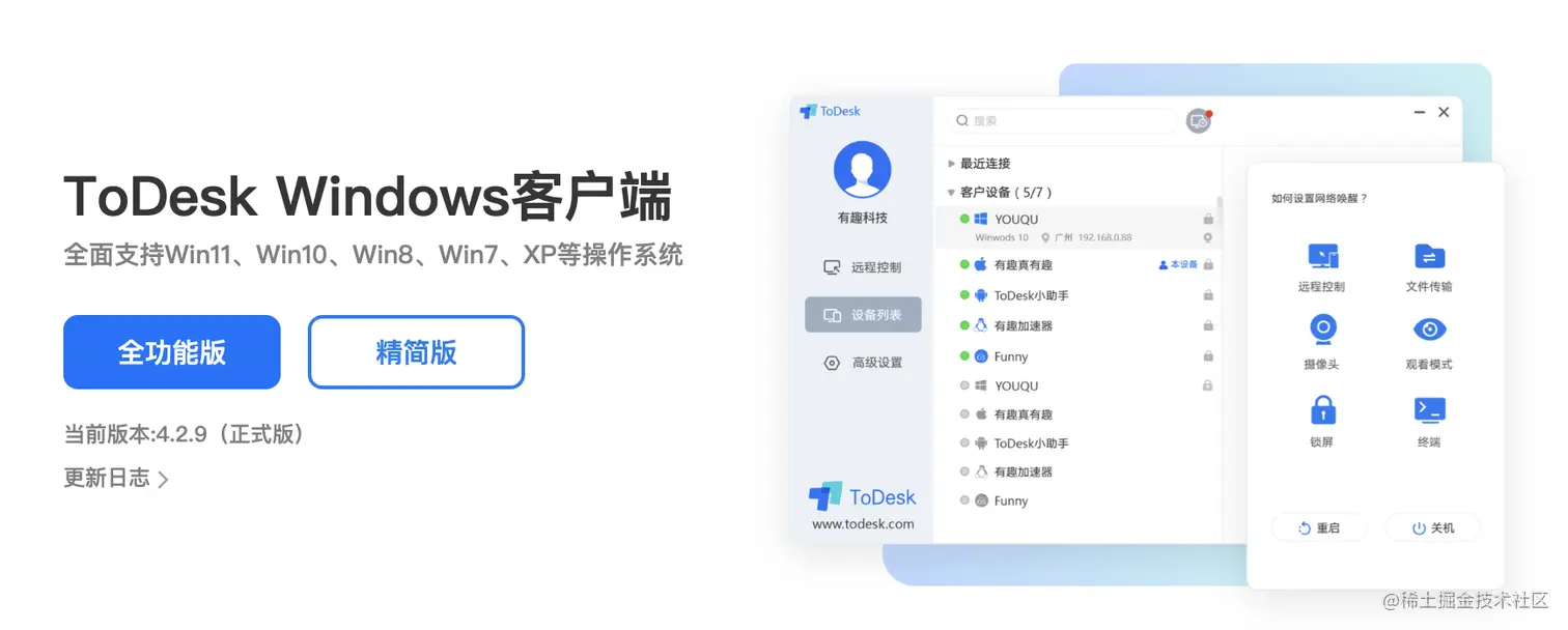 ToDesk 也是全平台覆盖,Windows 版分为全功能板和精简版,Linux 版需要 GUI 组件支持,目前是 beta 中。