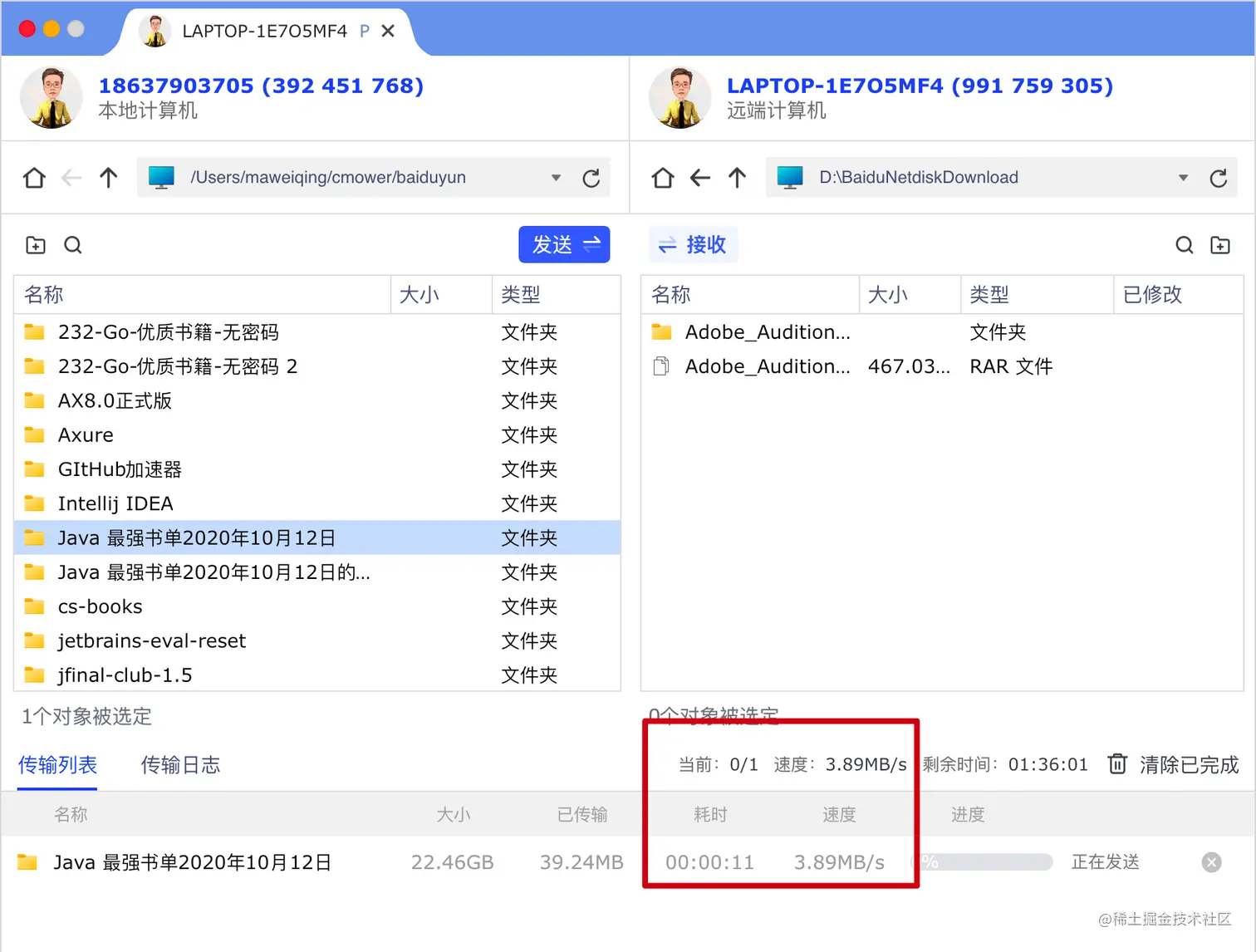 第二步,我们选择要传输的文件,我这里之前整理了一套 Java 书单,大概 40 G 的大小。