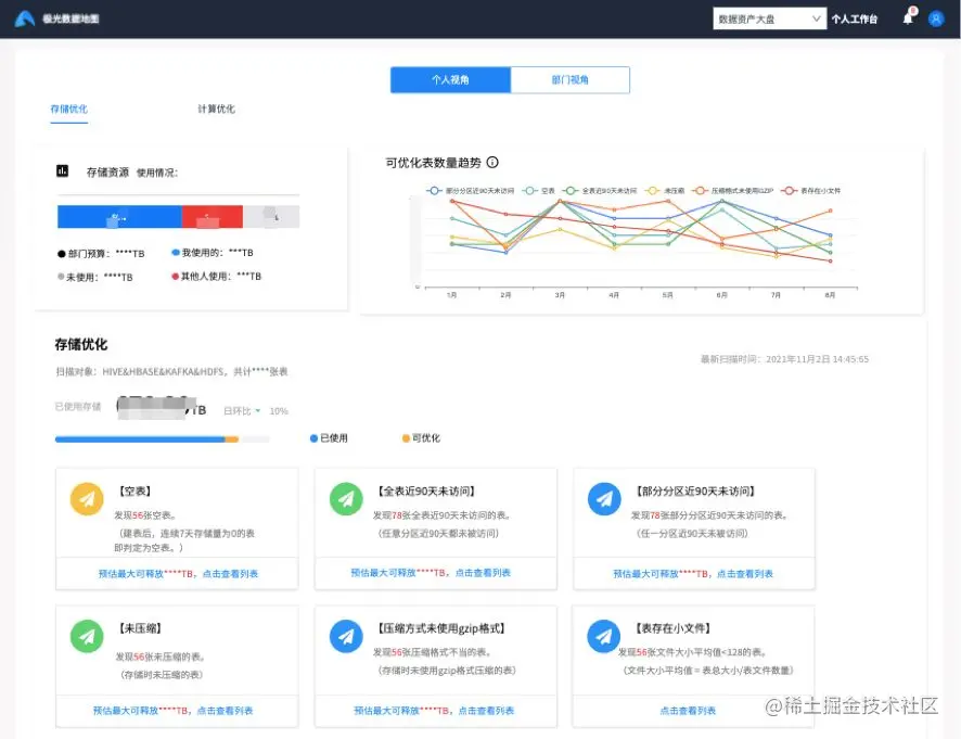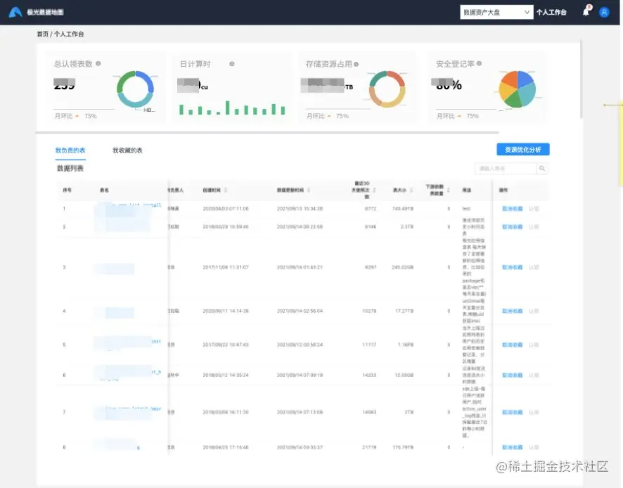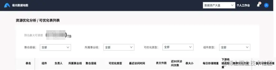 明细数据主要是根据数据的归属情况,对相关数据负责人进行展示,数据负责人可以了解到归属于自己的数据资产的资源使用情况,更好的了解现状。