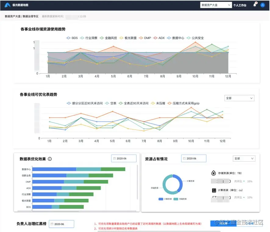 基于上述目的,我们从部门管理者和数据负责人的视角出发,分别进行了各类数据资产大盘和数据资源明细的开发,底层数据是我们上一节聊到的元数仓。